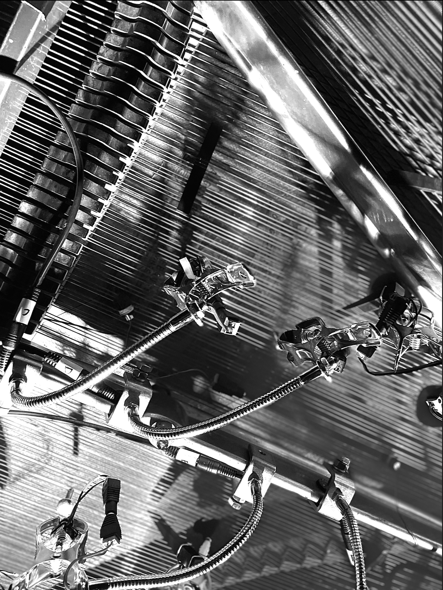 In the middle of the 20th century, John Cage used rudimentary preparations to turn a piano into an African-like percussion instrument. The piano interface "Alter Piano" tries to turn a piano into a rabid ISBN modem. 12 digitally controlled electric motors on 12 metal arms inside a grand piano transform the instrument into a screeching, sawing monster. Prepared piano 2.0.? At the same time, the question of the relationship between man and machine, between instrument and slot machine, is constantly renegotiated by the motor interface inside the piano, the heart of Western musical culture. The interface plays itself and the composer acts only as a programmer, being directed and using the motors like body extensions, or it is simply overridden by human intervention, such as bowing on the strings or playing the interior piano with mallets and balls. 4 microphones above and below the piano microscope the sound during this process, transforming the piano into an electro-acoustic object and the piano frame into its three-dimensional environment. The project "Alter Piano" will be performed in a 45-minute concert performance consisting of 6 compositions by Jascha Hagen & Max Arsava. The different possibilities of interaction with the very special interface are explored performatively and sonically in the compositions (see video link). The interface can be installed in any standard grand piano. The concert will be accompanied by a detailed booklet (see appendix). The development of the interface, as well as the production of a double vinyl, which is expected to be released at the fall 2023.